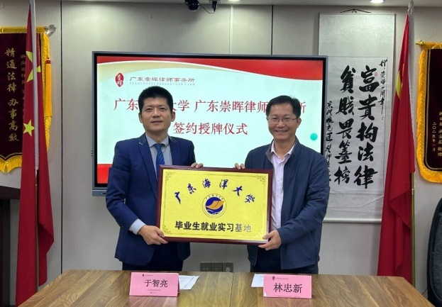 调研组与广东崇晖律师事务所就法学专业人才培养、学生实习实训、实务教学融合、毕业生就业等方面进行了深入探讨。同时,我院还与广东崇晖律师事务所签订了合作协议,正式确立其为毕业生就业实习基地。