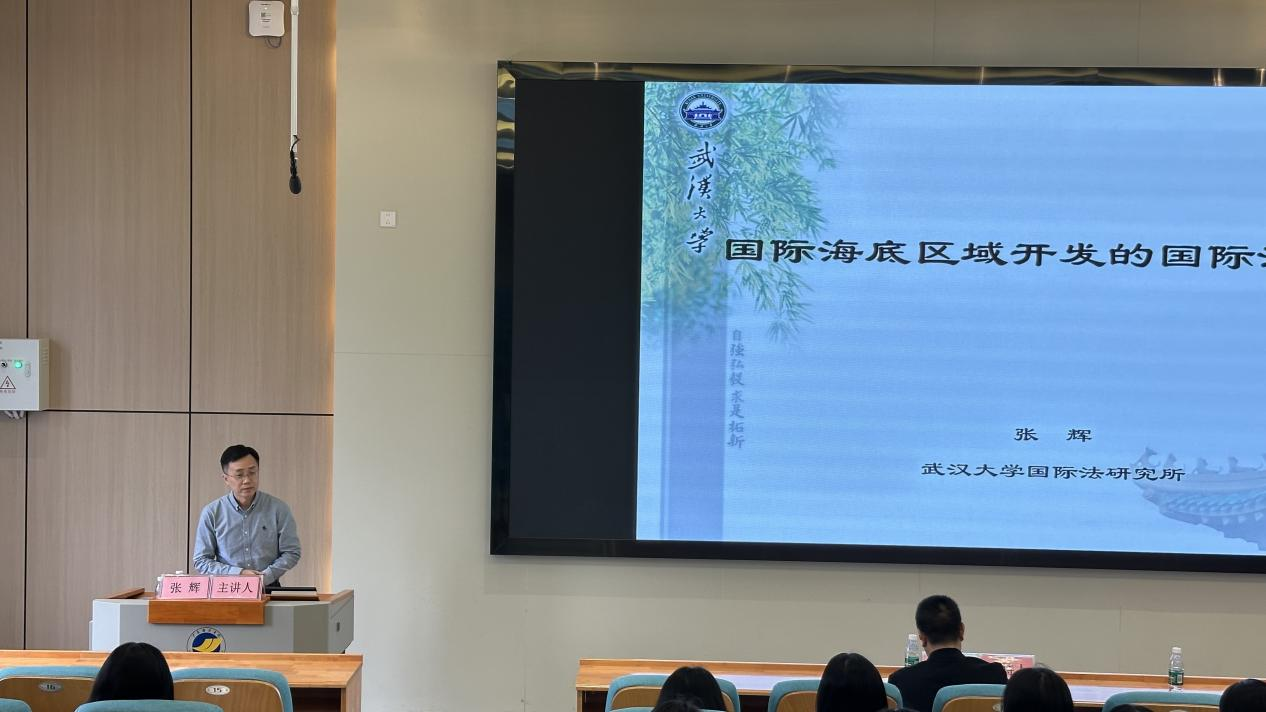 在主讲环节中,张辉教授以宏大的国际视野和清晰的逻辑框架,系统阐述了国际海底区域开发所涉及的主要法律问题。他从富钴结壳、多金属结核、多金属硫化物等深海战略性矿产资源的分布、开采技术以及商业开发现状等方面层层推进,继而深入分析了“区域”制度的历史沿革与制定背景,详细讲解了1994年《关于执行<联合国海洋法公约>第十一部分的协定》的制定背景和过程,及其对开发制度的调整,清晰勾勒出相关国际法框架的演变轨迹。结合国际海底矿产资源开发的最新动态,张辉教授进一步分析了“区域”制度的法律性质,重点解读了“人类共同继承财产”原则的内涵、理论发展、意义,并介绍了“区域”开发的基本制度架构及其运行机制。整场报告内容层层递进,一路娓娓道来,内容深入浅出,师生如沐春风。本场学术报告会不仅是一次高水平的学术研究成果展示,而且也是法政学院师生一次宝贵的交流与学习机会,与会师生对张教授的报告好评如潮。