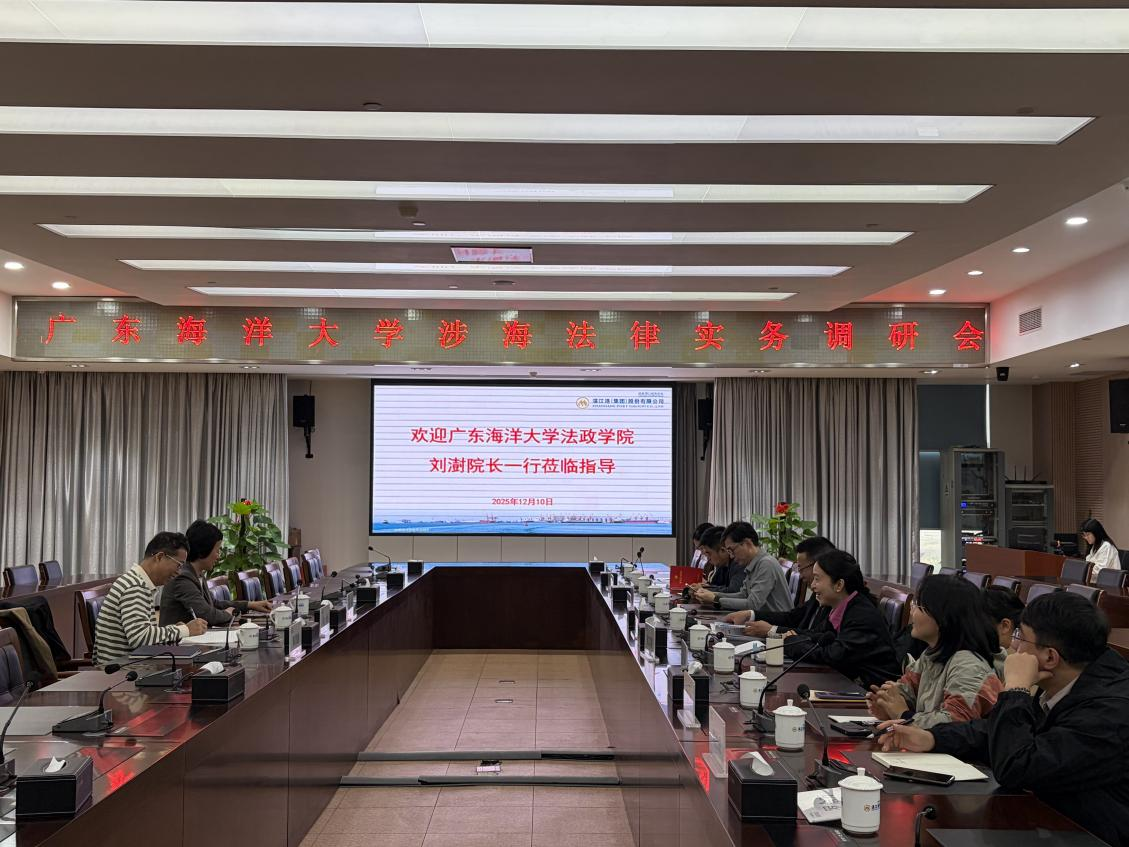 2025年12月10日上午,由法政学院副院长刘澍带队,海洋法与国际法学系主任张艾妮、刑事法学系主任张科、社会学系主任高法成、实践教学中心主任周立波、政治学系副主任季英伟、杨娟、黄琼、杨柳、江婷烨、王建佶等老师一同赴湛江港(集团)股份有限公司开展调研交流活动。
