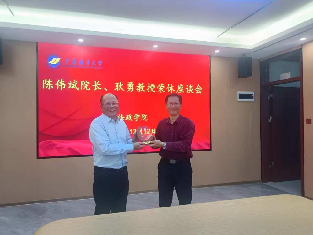 岁月如歌,致敬芳华。为感谢陈伟斌院长、耿勇教授数十年来为法政学院发展作出的卓越贡献,传承前辈深耕教育、潜心育人的精神品质,12月12日15:30-17:00时,法政学院在博文楼A座612室举行陈伟斌院长、耿勇教授荣休座谈会。学院班子成员、各系(中心)主任及教师代表齐聚一堂,共忆耕耘岁月,共话教育初心。座谈会由学院党委林忠新书记主持。开场伊始,林忠新书记详细介绍了本次座谈会的背景与目的。他表示,陈伟斌院长、耿勇教授将毕生心血倾注于法政学院的学科建设、人才培养与师资队伍发展之中,用责任与担当诠释了教育工作者的使命,为法政学院发展奠定了坚实基础。此次座谈会既是对两位前辈辛勤付出的感恩与致敬,也是为了传承其宝贵的教育经验与治学精神,激励后辈接续奋斗。