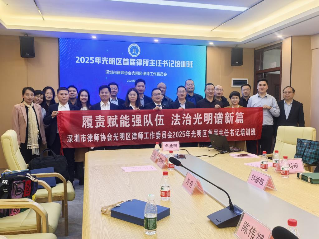 接下来,会议转入深圳市律师协会光明区律师工作委员会首届律所主任书记培训班环节。我院副院长刘澍教授以《全面贯彻习近平法治思想增强中国特色社会主义法治道路自信》为题,广东卓建(光明)律师事务所主任刘超以《中小型律师事务所精品化发展之道》为题,深圳市律师协会光明区律师工作委员会委员陈树文以《光明区本土法律市场培训——以城市更新土地整备为例》,广东耀粤律师事务所主任蒙鹏以《从主讲人亲自办理的案例谈律师执业合规》依次进行授课。培训活动内容精彩纷呈,各方交流互动频繁。