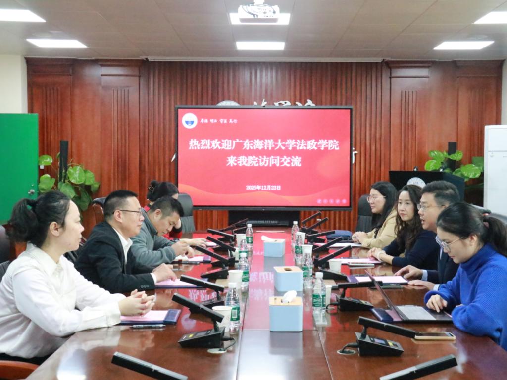 2025年12月23日,广东海洋大学法政学院副院长刘澍教授带队赴广州开展调研交流活动。上午,调研团队一行来到广东工业大学法学院,受到李志明副院长等的热情接待。双方在会议室举行座谈,围绕科研管理、研究生培养、学科建设及学生就业等议题深入交流,并就海洋特色法学与工科院校法学教育融合发展的路径展开探讨。会上,双方表达了在科研合作、师资互访与学生互动等方面加强协作的意愿,并提出建立常态化交流机制,推动省内法学院校协同发展。