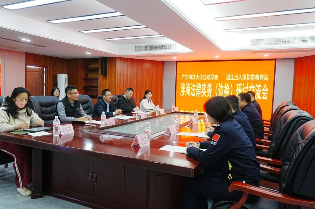 座谈会上,副院长刘澍教授详细介绍了我院此次调研的目的与未来规划,副站长王康围绕湛江市出入境边防检查站进行了详细说明。双方一致认为,可以在提交有关过境免签政府咨询报告、服务地方海洋经济发展、海洋综合执法工作、配合开展相关海洋权益维护等方面进行更为积极的协作,尤其是在相关课题联合申报、学生实习实训等领域进行更为深度的合作,实现资源共享、优势互补。